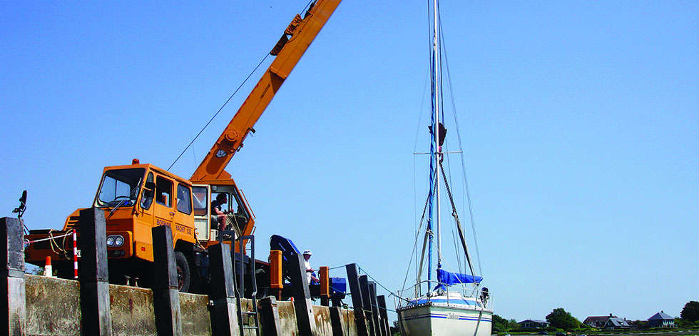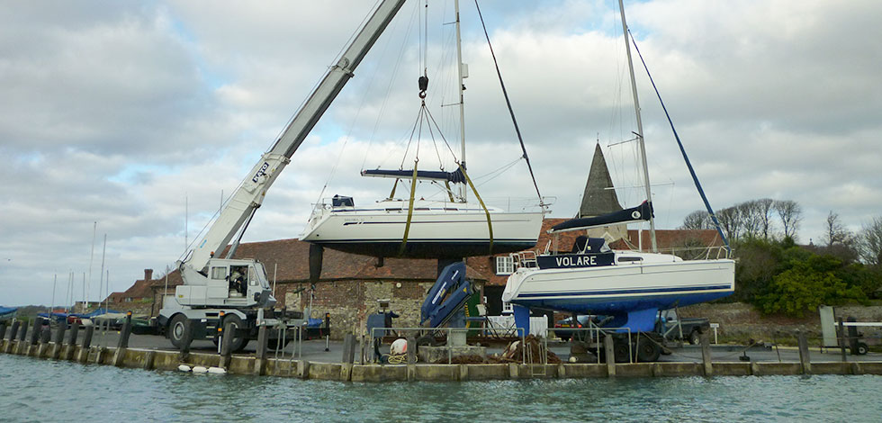 Our versatile crane is able to lift boats weighing up to 10 tonnes at Bosham Quay