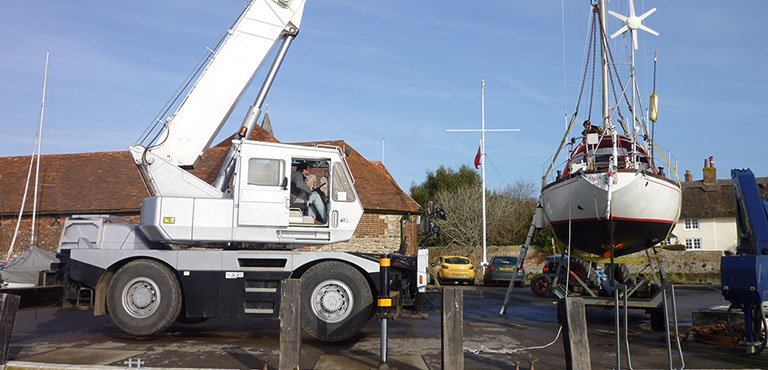 Our versatile crane is able to lift boats weighing up to 10 tonnes at Bosham Quay