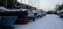 A wintery scene in the boatyard, showing the old cranes prior to upgrading to the new Kato crane