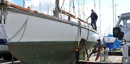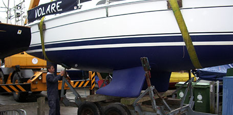 Dayboats, RIBs and other small boats can be lifted on and off customers own trailers (preventing submerging the trailer) at competitive rates. Larger vessels are craned out onto purpose built yard trailers and moved by tractor to the yard where they are craned off the trailer onto blocks or cradle for storage.